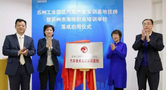 蘇州市人力資源與社會保障局職業(yè)能力建設(shè)處副處長徐莉芳,蘇州工業(yè)園區(qū)紀(jì)工委副書記、培訓(xùn)管理中心主任唐皓,蘇州金龍黨委書記、副總經(jīng)理兼工會主席謝飛鳴,海格學(xué)校副校長王新亮共同為蘇州工業(yè)園區(qū)汽車產(chǎn)業(yè)實(shí)訓(xùn)基地揭牌,此舉標(biāo)志著海格學(xué)校日后將為全區(qū)社會經(jīng)濟(jì)發(fā)展和培養(yǎng)優(yōu)秀人才做出更大的努力。