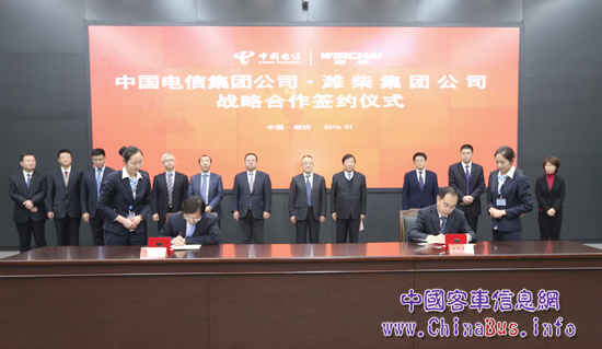 1月27日,濰柴集團(tuán)與中國電信集團(tuán)在濰柴工業(yè)園區(qū)簽訂了“互聯(lián)網(wǎng)+智能制造”領(lǐng)域戰(zhàn)略合作協(xié)議。