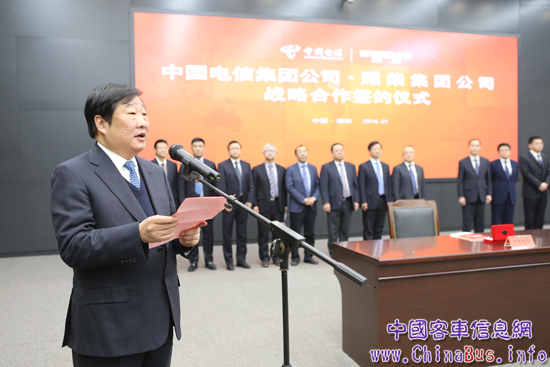 譚旭光董事長在致辭中指出,本次簽署戰(zhàn)略合作協(xié)議,既標(biāo)志著中國電信與濰柴兩個(gè)行業(yè)領(lǐng)先者的強(qiáng)強(qiáng)聯(lián)合,也是雙方加快自身結(jié)構(gòu)調(diào)整、實(shí)現(xiàn)戰(zhàn)略轉(zhuǎn)型、提升核心競爭力的有利契機(jī),必將為彼此發(fā)展注入新的動(dòng)力。