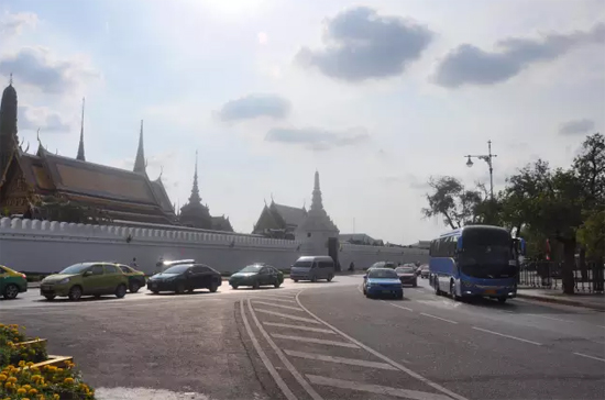 泰國(guó)曼谷大皇宮景區(qū)的金龍客車