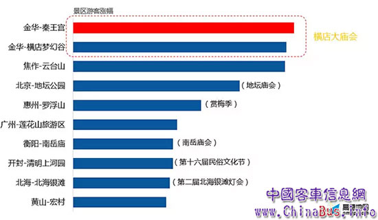 春節(jié)期間的游覽多與廟會、祈福結(jié)合。根據(jù)高德地圖位置大數(shù)據(jù)的分析,今年春節(jié)期間游客漲幅最高的TOP10景區(qū)排名前兩位的是橫店大廟會的秦王宮和夢幻谷,排名第四的北京地壇公園有地壇廟會,排名第七的衡陽南岳廟則有南岳廟會。