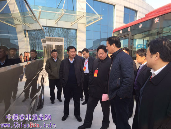 中通客車董事長(zhǎng)李樹朋和總經(jīng)理孫慶民陪同嘉賓參觀中通車間