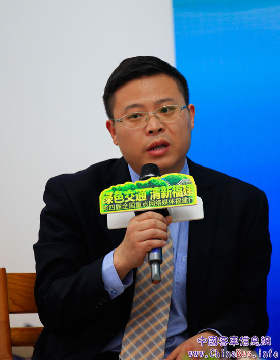 4月12日下午,廈門金龍旅行車有限公司常務副總經(jīng)理彭東慶先生、廈門金龍旅行車公司新能源研究所張汝輝所長、廈門公交集團有限公司副總經(jīng)理高雁針對“綠色交通 清新福建”第四屆全國重點網(wǎng)絡媒體行大型采訪活動,接受了來自中央重點新聞網(wǎng)站、全國各省委省政府新聞門戶網(wǎng)站、著名商業(yè)網(wǎng)站、傳統(tǒng)主流媒體等記者六十余人的集體采訪,受訪嘉賓對“綠色交通”發(fā)表了自己的看法,以及暢談了各自在節(jié)能減排方面的做法和取得的成就。