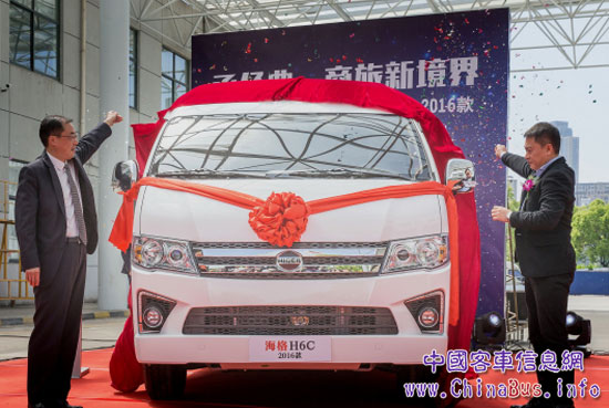 謝飛鳴與經(jīng)銷商代表一起為海格2016版H6C揭幕