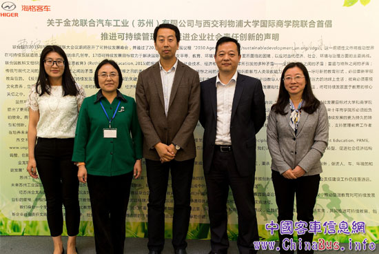參加首屆圓桌論壇嘉賓走進(jìn)蘇州金龍,參觀了海格展廳,現(xiàn)場觀摩海格新能源系列客車,并與海格客車領(lǐng)導(dǎo)就企業(yè)社會責(zé)任和可持續(xù)發(fā)展的困惑與挑戰(zhàn)展開深入探討。雙方同時(shí)聯(lián)合發(fā)起“推進(jìn)可持續(xù)管理教育促進(jìn)企業(yè)社會責(zé)任創(chuàng)新”的首倡聲明,旨在推動管理教育對可持續(xù)發(fā)展的重視,積極探索通過院企合作、開放創(chuàng)新的新模式,將可持續(xù)發(fā)展目標(biāo)融入院企合作發(fā)展戰(zhàn)略、教學(xué)課程體系、定制培訓(xùn)和應(yīng)用科研的實(shí)現(xiàn)途徑。