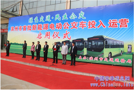 4月24日,山東省濱州市首批新能源電動公交車投入運營啟用儀式在濱州汽車總站舉行,100輛中通新能源電動公交車被投入使用。