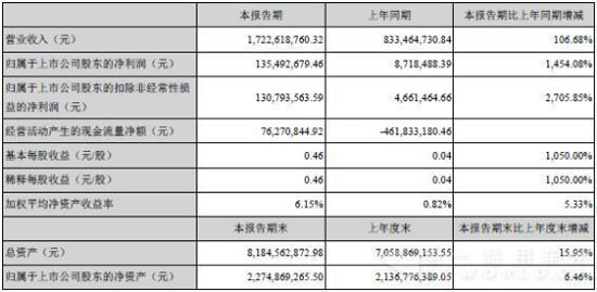 2016年一季度,中通客車實現(xiàn)營業(yè)收入17.23億元,同比增長106.68%;其中歸屬于上市公司股東的凈利潤為1.35億元,同比猛增14.54倍。