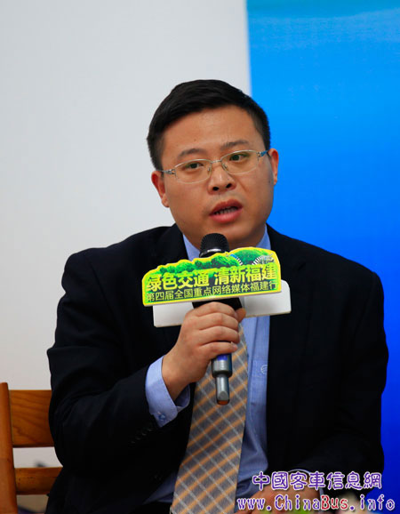 廈門金龍旅行車有限公司常務(wù)副總經(jīng)理彭東慶接受記者采訪