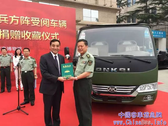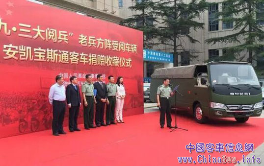 2015年9月3日“中國(guó)人民抗日戰(zhàn)爭(zhēng)暨世界反法西斯戰(zhàn)爭(zhēng)勝利70周年大閱兵”,安凱寶斯通承載抗戰(zhàn)老兵接受全世界人民的檢閱,更是具有重要的歷史價(jià)值,是進(jìn)行愛(ài)國(guó)主義教育、弘揚(yáng)和平精神的生動(dòng)載體。因此,國(guó)家軍事博物館收藏這輛安凱寶斯通受閱車,不僅是安凱客車的極大榮耀,也是中國(guó)客車業(yè)制造業(yè)的極大榮耀。