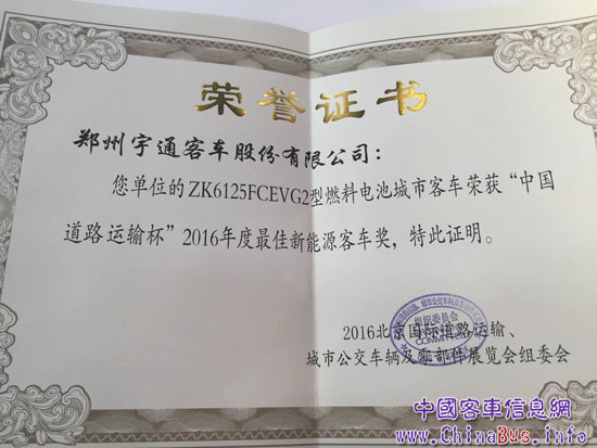 其中,在新能源客車方面,宇通最新發(fā)布的ZK6125FCEVG2燃料電池客車,與純電動(dòng)客車E12(ZK6125BEVG12),以及插電式公交H8(ZK6850CHEVNPG23)和H10(ZK6105CHEVPG21)四款車型同時(shí)獲得2016年度“最佳新能源客車獎(jiǎng)”;在公商務(wù)車領(lǐng)域,宇通高端公商務(wù)客車T7榮獲2016年度“最佳商務(wù)車獎(jiǎng)”;在車聯(lián)網(wǎng)及零部件方面,宇通“安節(jié)通”獲得2016年度“最佳車聯(lián)網(wǎng)服務(wù)平臺(tái)獎(jiǎng)”,而宇通新能源關(guān)鍵零部件展品低溫?zé)岜每照{(diào)系統(tǒng)和3.5T新能源專用后橋總成雙雙獲得2016年度“最佳新能源客車零部件獎(jiǎng)”。