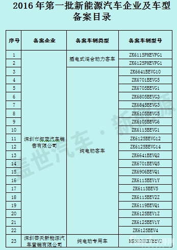 23款新能源車型通過(guò)深圳2016年首批備案