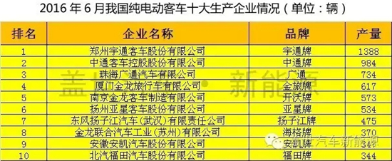 表1:2016年6月我國(guó)主要純電動(dòng)客車(chē)生產(chǎn)企業(yè)產(chǎn)量統(tǒng)計(jì)