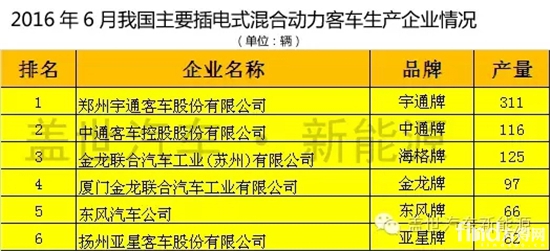 表2:2016年6月我國(guó)主要插電式混合動(dòng)力客車(chē)生產(chǎn)企業(yè)產(chǎn)量統(tǒng)計(jì)