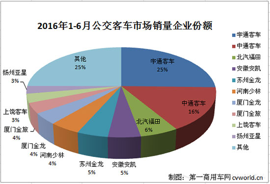 宇通第一中通第二 2016年1-6月公交客車(chē)市場(chǎng)銷(xiāo)量排行