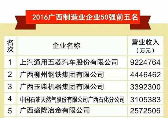 玉柴集團(tuán)公司玉柴股份分別榮膺“2016廣西企業(yè)100強(qiáng)”“廣西制造業(yè)前三強(qiáng)““廣西優(yōu)秀企業(yè)”