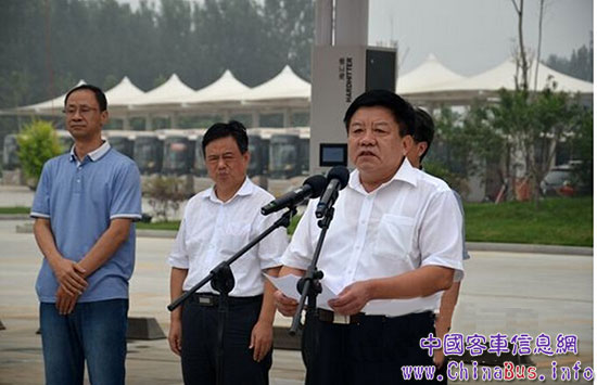 儀式上,聊城市副市長任曉旺作重要講話,他提到,近三年來,聊城市中心城區(qū)累計更新、新增新能源公交車914部,新能源公交車占比達84.1%,居于國內(nèi)領先水平;建成了超大型新能源汽車充電場站,并率先進入“群充時代”;開展了公交IC卡“千萬惠乘”活動,最大限度讓利于民,鼓勵、引導百姓優(yōu)選綠色城市公交出行,為建設“全國新能源汽車推廣示范城市”、“國家節(jié)能減排財政政策綜合示范城市”和“國家綠色交通試點城市”做出了突出貢獻。