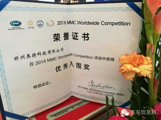 8月25日,從2016上海國際智慧交通展覽會(2016MMC)頒獎(jiǎng)典禮上傳出喜訊,鄭州奧特科技有限公司榮獲2016MMC Worldwide Competiton技術(shù)創(chuàng)新入圍獎(jiǎng)。