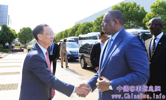 9月3日下午,出席G20峰會(huì)前夕,塞內(nèi)加爾總統(tǒng)馬基·薩勒一行到蘇州金龍海格客車參觀訪問(wèn)。江蘇省外事辦主任費(fèi)少云、蘇州工業(yè)園區(qū)管委會(huì)主任楊知評(píng)、蘇州市外事辦主任徐華東、蘇州工業(yè)園區(qū)經(jīng)發(fā)委副主任杜豐、蘇州金龍海格客車總經(jīng)理黃書平等陪同。