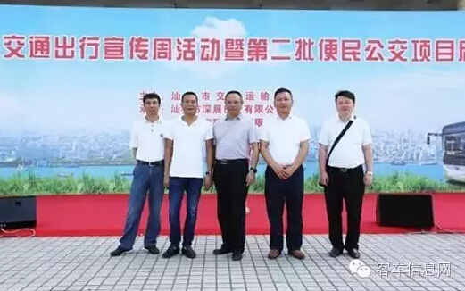 9月24日上午,由汕頭市交通運輸局主辦,汕頭市深展巴士有限公司、汕頭市南翔巴士有限公司承辦,珠海銀隆新能源有限公司協(xié)辦的2016年公共交通出行宣傳周活動暨第二批便民公交項目啟動儀式在汕頭市舉行。汕頭市長劉小濤、副市長李耿堅、市政協(xié)副主席杜懷丹、交通運輸局局長陳少輝、公交管理處處長林荔松等領(lǐng)導(dǎo)參加了本次活動。