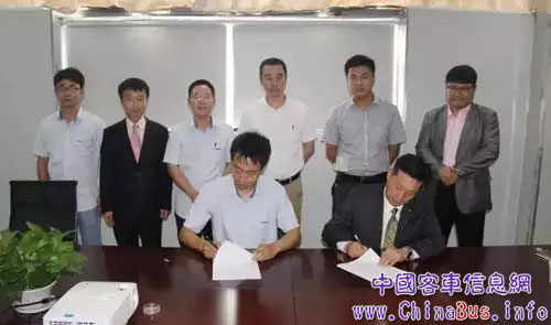 南京金龍副總裁董釗志(圖左),TMG社長(zhǎng)曹世鉉(圖右)簽訂戰(zhàn)略合作協(xié)議