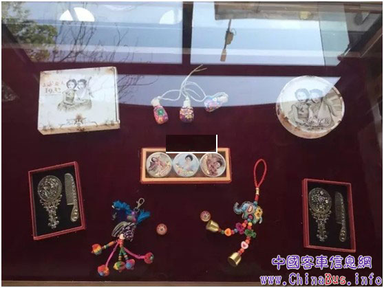 連車內(nèi)陳列柜里,擺放的都是一些“民國舊物”,坐車的時候看到這些,是不是特別有感覺?