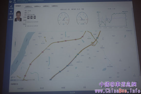 除了比賽項目設置上的實況化及精細化外,這次比賽讓記者感觸頗深的,就是比賽指定用車ZK6122HQBA的提供者——宇通客車,聯(lián)合賽事組委會在現(xiàn)場設置的車聯(lián)網(wǎng)視頻監(jiān)控平臺。