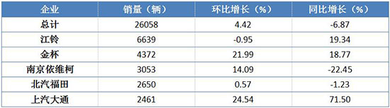 9月輕型客車整車銷量前五名