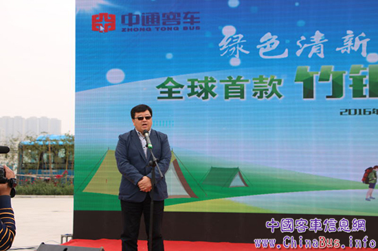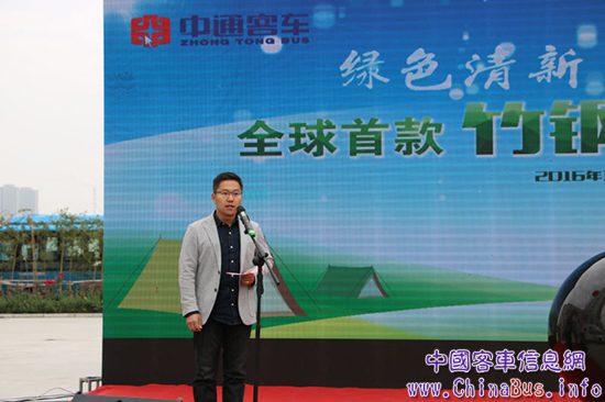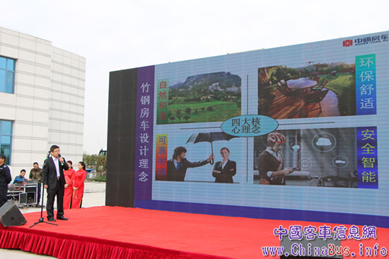 中通客車總經(jīng)理孫慶民首先致歡迎辭,他表示 ,該款全球首發(fā)的竹鋼營地房車是與營地開發(fā)企業(yè)聯(lián)手打造的一款外形新穎、天然環(huán)保型的全新產(chǎn)品,此次竹鋼房車的研發(fā)成功,標志著中通在房車領(lǐng)域乃至整個行業(yè)都做了一次新技術(shù)、新工藝、新材料的突破。