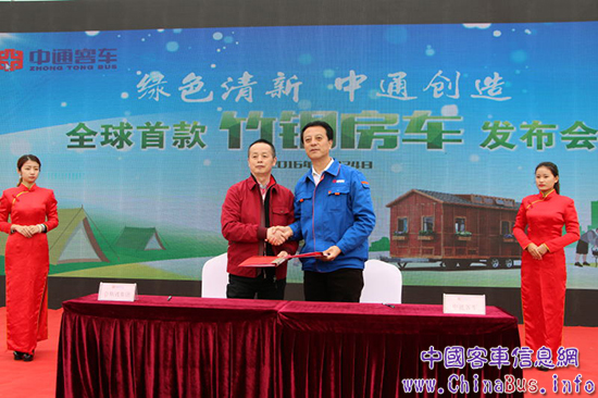在發(fā)布會現(xiàn)場,中通客車與合作伙伴南京雅高公司以及會斯通公司舉行了簽約儀式,根據(jù)協(xié)議,兩個合作企業(yè)將與中通客車一起共同打造面向國內(nèi)及全球市場的竹鋼房車,提升該產(chǎn)品競爭力,實現(xiàn)產(chǎn)業(yè)化,在一年內(nèi)完成超過300臺中通竹鋼房車的銷售。