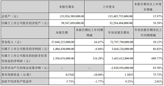 前三季度(1-9月份),比亞迪營業(yè)收入為727.98億元,較去年同期增長50.12%。其中歸屬于上市公司股東的凈利潤為36.64億元,較去年同期增長86.82%。