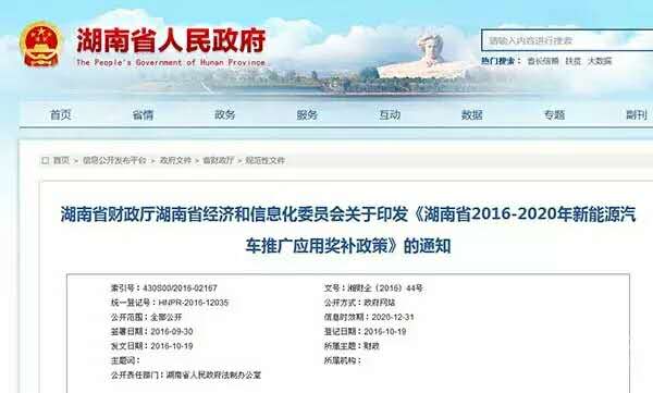 11月2日,從湖南省人民政府獲悉,湖南省財政廳、湖南省經(jīng)濟和信息化委員會印發(fā)《湖南省2016-2020年新能源汽車推廣應用獎補政策》的通知。根據(jù)獎補政策,對購置使用新能源客車的,按照當年中央財政補助標準的25%給予省級財政購置獎補。對一次性購置30輛以上新能源客車且用于租賃運營的非公交單位,這一比例為30%。此外,綜合考慮新能源公交車保有量、普及率、推廣時間等因素,對14個市州、試點縣市“綠色公交”推廣工作,給予每個市州縣最高不超過8000萬的推廣獎補資金。
