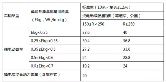 注:上述補助標(biāo)準(zhǔn)以10-12米客車為標(biāo)準(zhǔn)車給予補助,其他長度純電動客車補助標(biāo)準(zhǔn)按照上表單位載質(zhì)量能量消耗量和純電動續(xù)駛里程劃分,插電式混合動力客車(含增程式)補助標(biāo)準(zhǔn)按照上表純電動續(xù)駛里程劃分。其中, 6米及以下客車按照標(biāo)準(zhǔn)車0.2倍給予補助;6米<車長≤8米客車按照標(biāo)準(zhǔn)車0.5倍給予補助;8米<車長≤10米客車按照標(biāo)準(zhǔn)車0.8倍給予補助;12米以上、雙層客車按照標(biāo)準(zhǔn)車1.2倍給予補助。