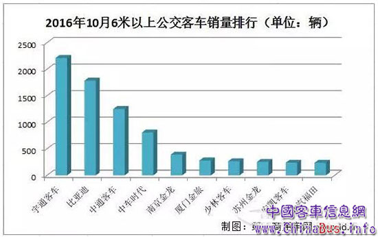 據(jù)中國客車統(tǒng)計信息網(wǎng)數(shù)據(jù)顯示,2016年10月,國內(nèi)公交客車銷量為9386輛,同比下降3.59%。2016年1-9月,國內(nèi)公交客車累計銷售75792輛,同比增長19.82%,占據(jù)6米以上客車市場總銷量的49.64%。