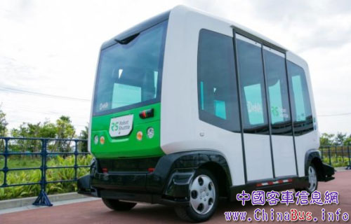 試驗(yàn)用自動(dòng)駕駛巴士“Robot Shuttle”(機(jī)器人擺渡車,可乘坐12人)上沒有駕駛席、方向盤和加速器,通過衛(wèi)星定位系統(tǒng)(GPS)和傳感器把握行駛位置和周圍的環(huán)境。最高時(shí)速約10公里,緩慢地駛過事先設(shè)定的試驗(yàn)路線。