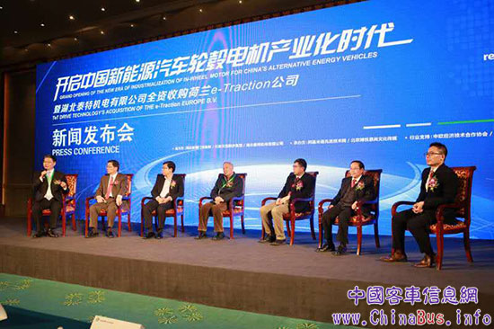 11月21日,“開啟中國新能源汽車輪轂電機(jī)產(chǎn)業(yè)化時(shí)代暨湖北泰特機(jī)電有限公司全資收購荷蘭e-Traction公司”新聞發(fā)布會在北京釣魚臺國賓館隆重舉行。本次會議邀請了業(yè)內(nèi)眾多重量級嘉賓,機(jī)械工業(yè)部、科技部、全國清潔汽車行動協(xié)調(diào)領(lǐng)導(dǎo)小組辦公室專家組、中國汽車工業(yè)協(xié)會、中國汽車工程學(xué)會、中國歐洲經(jīng)濟(jì)技術(shù)合作協(xié)會、世界汽車工程師聯(lián)合會、中國汽車技術(shù)研究中心、中國道路運(yùn)輸協(xié)會、美中汽車交流協(xié)會、全球汽車精英組織主席電動車百人會等主管部門和行業(yè)專家以及荷蘭駐中國大使等親臨現(xiàn)場,共同見證了這一行業(yè)盛事。