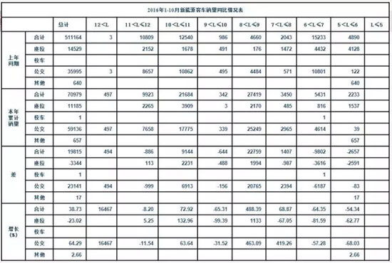 2016年1-10月份,中國客車統(tǒng)計信息網(wǎng)重點關(guān)注的50家企業(yè)累計銷售5米以上客車180767輛(為了保證同比的真實性,數(shù)據(jù)中剔除了福田的風(fēng)景海獅系列) ,同比下降3.28%,其中座位客車(公路客車)下降16.59%,校車下降3.71%,公交客車增長15.39%,其他客車銷量較小不做重點研究,詳細(xì)數(shù)據(jù)見表1-1。