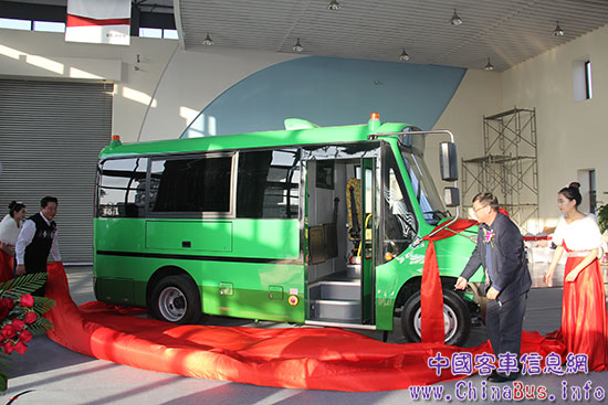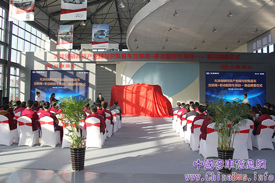 天津創(chuàng)研科技產(chǎn)業(yè)園投資有限公司董事長李宏和安凱客車總經(jīng)理查保應(yīng)共同為新車揭幕