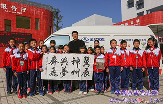 本站活動是“金龍移動圖書館”公益項目今年的收官之站,交通運(yùn)輸部直屬機(jī)關(guān)工會、中國交通報社等愛心伙伴,齊聚一堂,與金龍客車一同用一顆顆熾熱的愛心共同啟動了安遠(yuǎn)站“金龍移動圖書館”。著名旅游畫家第一奇人——袁福順先生,特別為“金龍移動圖書館”公益項目題詞獻(xiàn)字,為活動添墨加彩。