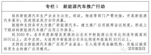 推廣應(yīng)用成效明顯。新能源汽車在全省得到普及應(yīng)用,在城市公交、出租、郵政、物流運(yùn)輸?shù)裙差I(lǐng)域推廣應(yīng)用比例顯著提高。到2020年,各市年度新增及更換的公交車中新能源公交車比例逐年提高到30%以上,其中沈陽、大連兩市逐年提高到35%以上。