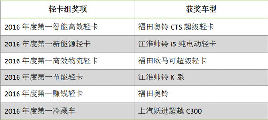 輕卡組六個(gè)獎(jiǎng)項(xiàng)及獲獎(jiǎng)車(chē)型一覽