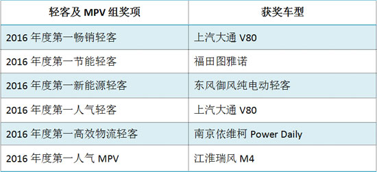 輕客及MPV組六個(gè)獎(jiǎng)項(xiàng)及獲獎(jiǎng)車(chē)型一覽