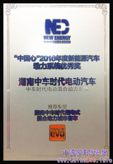 同時(shí),“中國(guó)心”2016年度新能源汽車動(dòng)力系統(tǒng)評(píng)選中,中車時(shí)代電動(dòng)混合動(dòng)力系統(tǒng)獲“新能源汽車動(dòng)力系統(tǒng)優(yōu)秀獎(jiǎng)”?!爸袊?guó)心”評(píng)選,是根據(jù)新能源汽車動(dòng)力系統(tǒng)的特性,制定出一套符合新能源汽車動(dòng)力系統(tǒng)的測(cè)評(píng)體系,由7名頂尖級(jí)行業(yè)專家評(píng)委進(jìn)行評(píng)定,是行業(yè)最權(quán)威的評(píng)選之一。