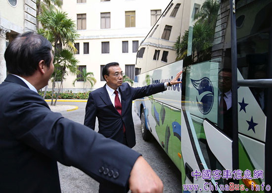李克強(qiáng)總理在古巴體驗(yàn)出口的宇通客車