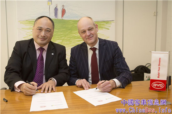 比亞迪歐洲分公司總經理何一鵬與Connexxion公司總經理Eric van Eijndhoven成功簽約