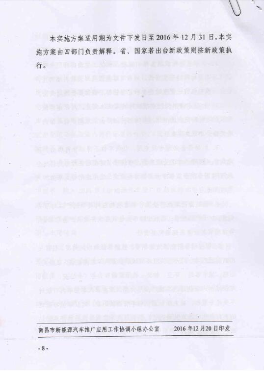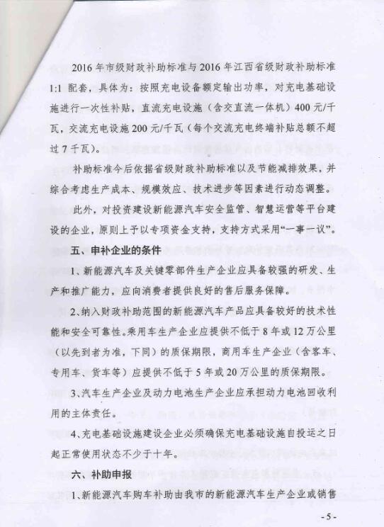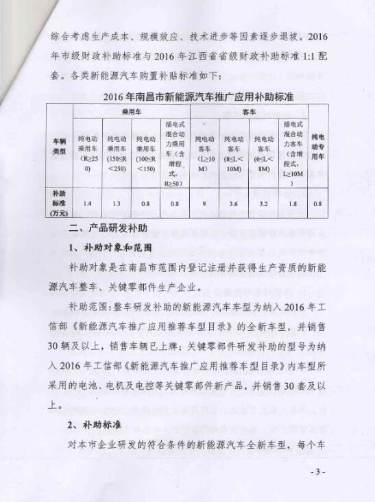 南昌市2016年新能源汽車推廣應用財政補助方案 市級與省級補助標準1:1配套