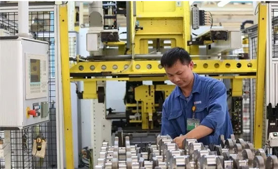 此時,在制造事業(yè)部重機裝配車間,生產(chǎn)線早已轉(zhuǎn)動起來了,沒有參加誓師大會的員工已在爭分奪秒地裝配發(fā)動機。