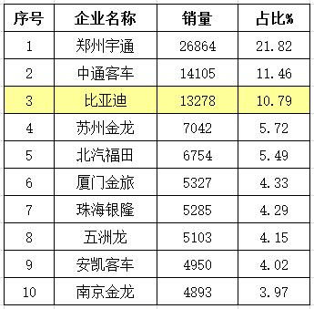 值得一提的是,比亞迪商用車10米以上新能源大客車的銷售情況格外搶眼。2016年,整個新能源市場10米以上大客車共銷售56958輛,銷量排名前十的企業(yè)共銷售47017輛,占比約83%。