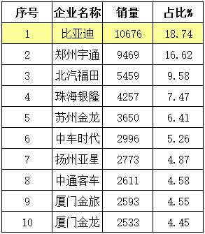 10米以上純電動大客龍頭地位難以撼動