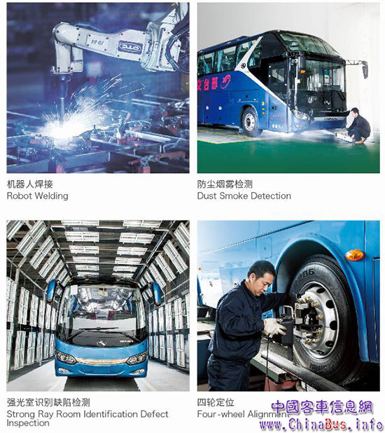 經(jīng)過近30年的不斷創(chuàng)新和積累,金龍客車創(chuàng)造了行業(yè)獨特的“金龍生產(chǎn)方式”,以“工藝領(lǐng)先、做工細致、品質(zhì)精良”而蜚聲業(yè)界。金龍擁有國內(nèi)領(lǐng)先的客車生產(chǎn)線和國際領(lǐng)先的專業(yè)化生產(chǎn)裝備,并應(yīng)用了整車陰極電泳、3H高強度全承載車身、激光切割、蒙皮液壓漲拉和機器人焊接等先進制造工藝。生產(chǎn)組織和流程設(shè)計充分運用IE (Industrial Engineering)管理技術(shù),不僅生產(chǎn)效率居于行業(yè)領(lǐng)先,還有效保證了生產(chǎn)過程品質(zhì)。