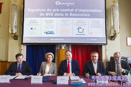 3月23日,比亞迪宣布將在法國(guó)上法蘭西大區(qū)博韋市投資1000萬(wàn)歐元建設(shè)阿洛訥工廠,比亞迪歐洲分公司總經(jīng)理何一鵬、上法蘭西大區(qū)委員會(huì)主席澤維爾·伯蘭特(Xavier Bertrand)、博韋市市長(zhǎng)兼國(guó)家參議院議員卡羅琳·卡約(CarolineCayeux)及其他政府代表出席了新聞發(fā)布會(huì)。這是比亞迪在歐洲建立的第二座電動(dòng)大巴廠,也是比亞迪繼美國(guó)、巴西、匈牙利等地之后建設(shè)的第四座海外大巴工廠。